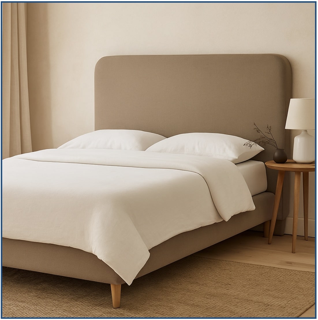 A premium upholstered floor standing headboard with curved top available in a wide selection of fabrics to suit all styles.