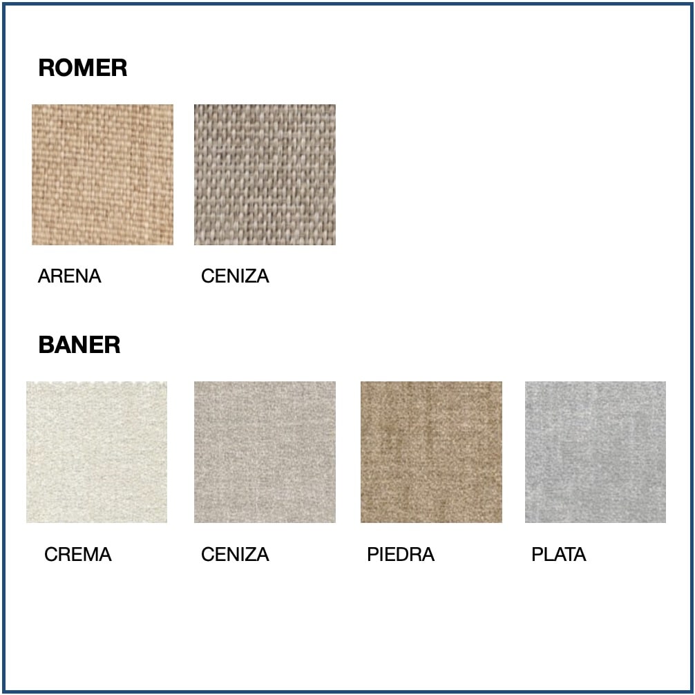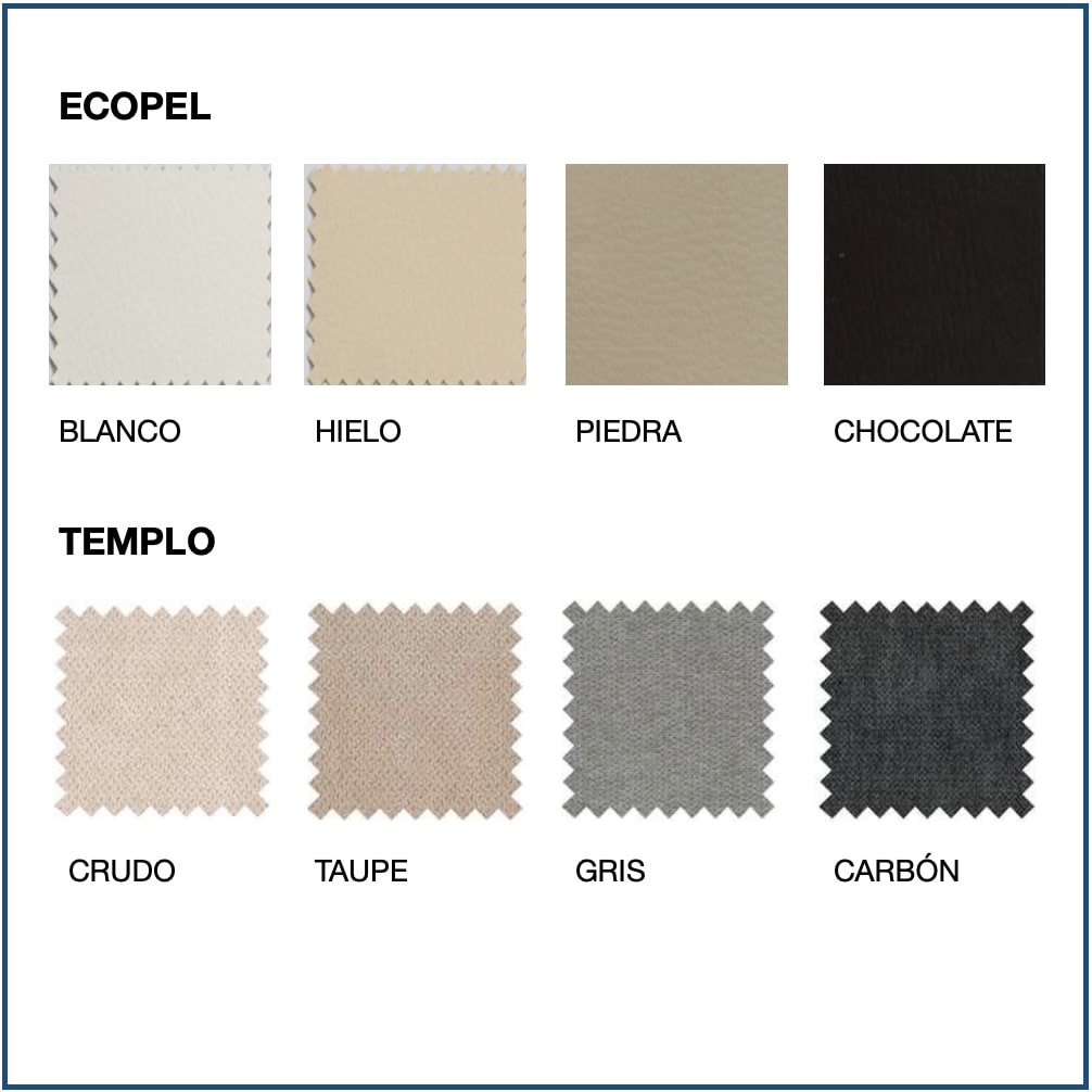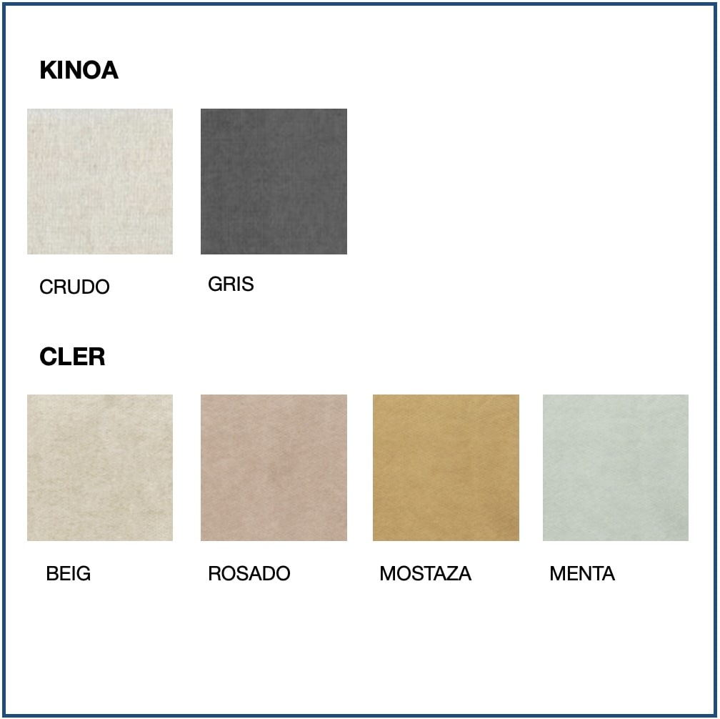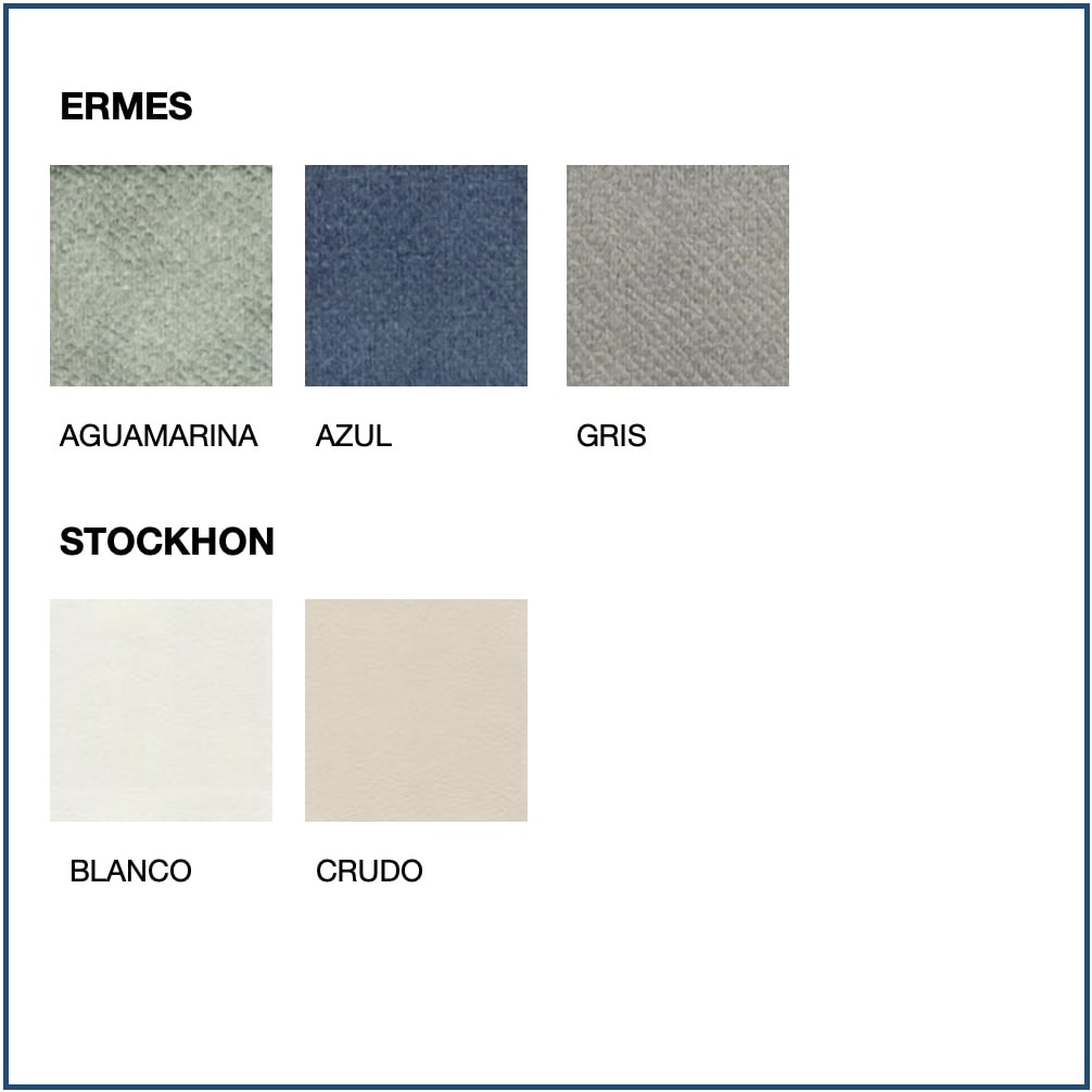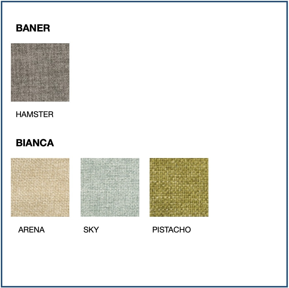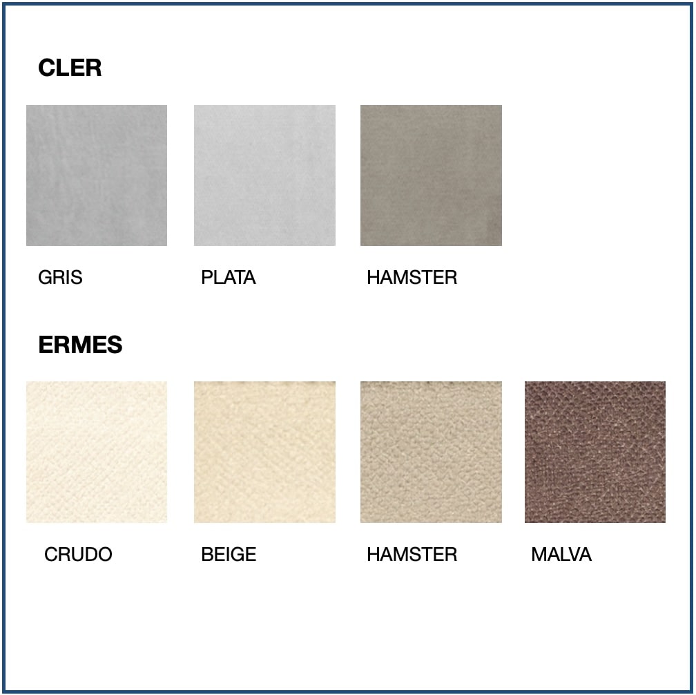 Fabrics available: Ecopel, Templo, Romer, Baner, Bianca, Kinoa, Cler, Ermes and Stockon.