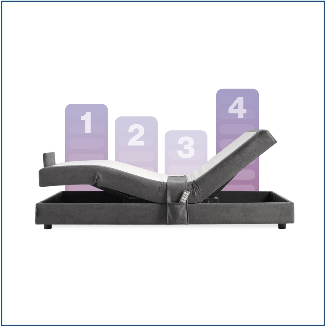 Adjustable bed base with 4 differing positions to create the most comfortable sleep surface.